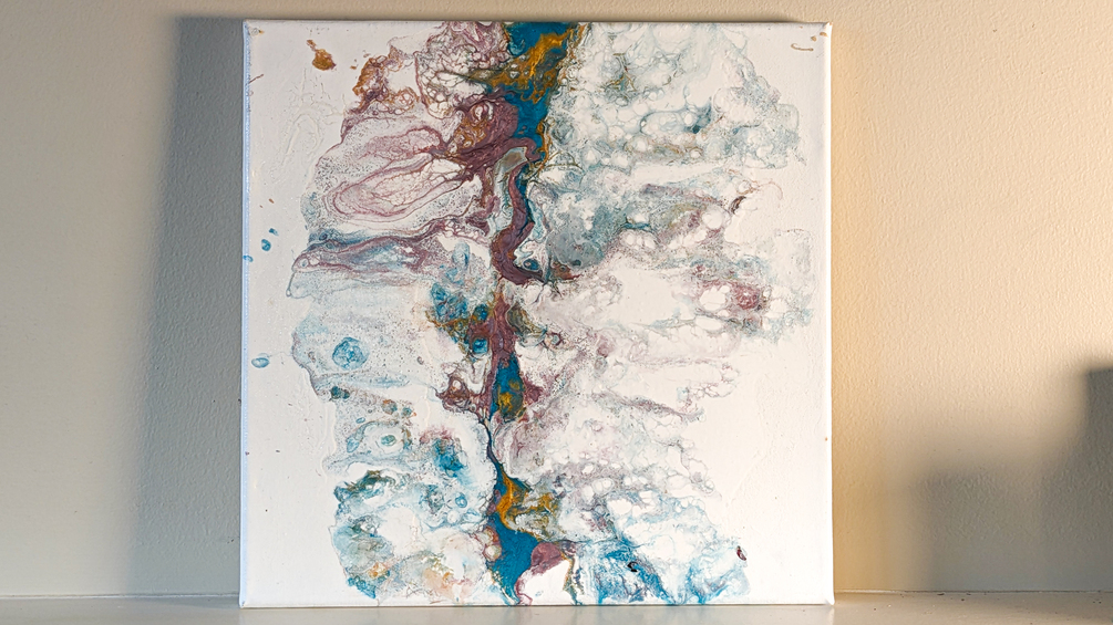 This is a 12 x 12 acrylic paint pour on a stretched canvas.